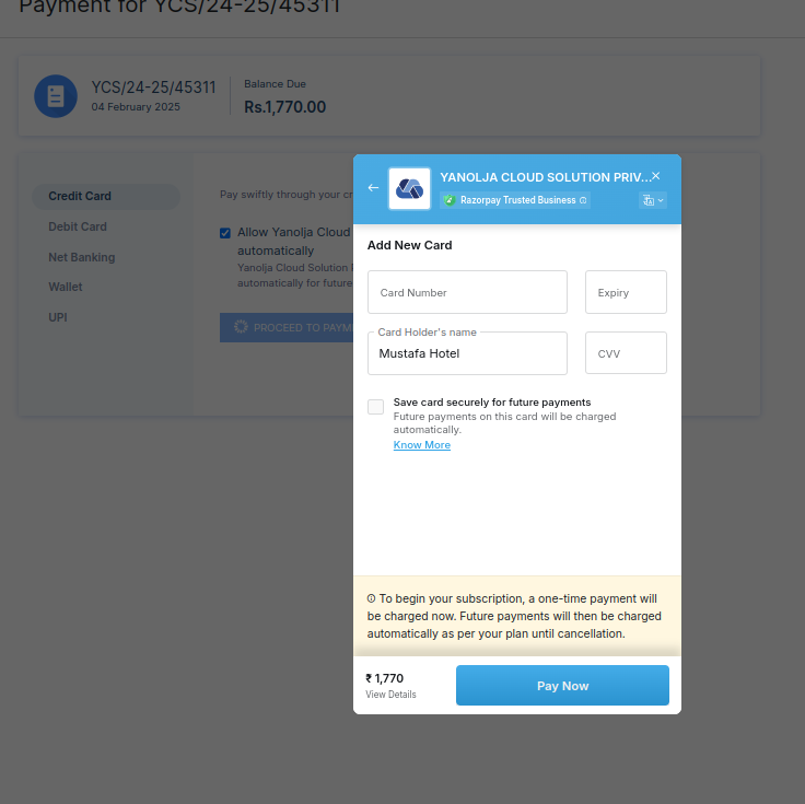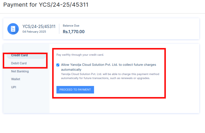 3) Once click on proceed to payment, the card save option is coming to be enrolled on auto debit.