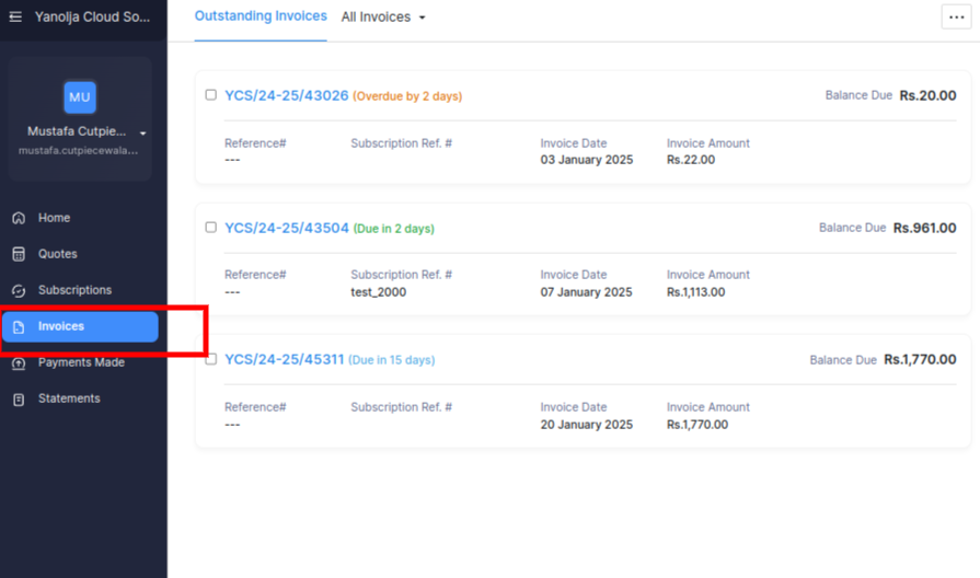 Step 2 — Find any pending invoice that needs payment.