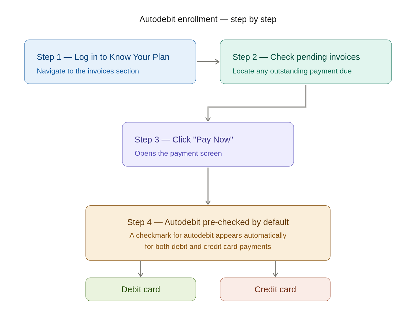 That's it! Once you complete the payment with autodebit checked, future payments will be debited automatically. Let me know if you'd like to add more detail or refine anything in this guide.