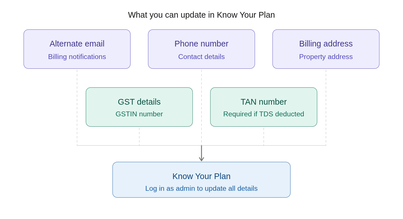All of the above can be managed in one place. Simply log in to Know Your Plan as an admin and navigate to your billing settings to make any changes.