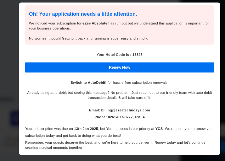When a property gets locked, the login page displays a "Renew Now" button — this is the entry point for regaining access.